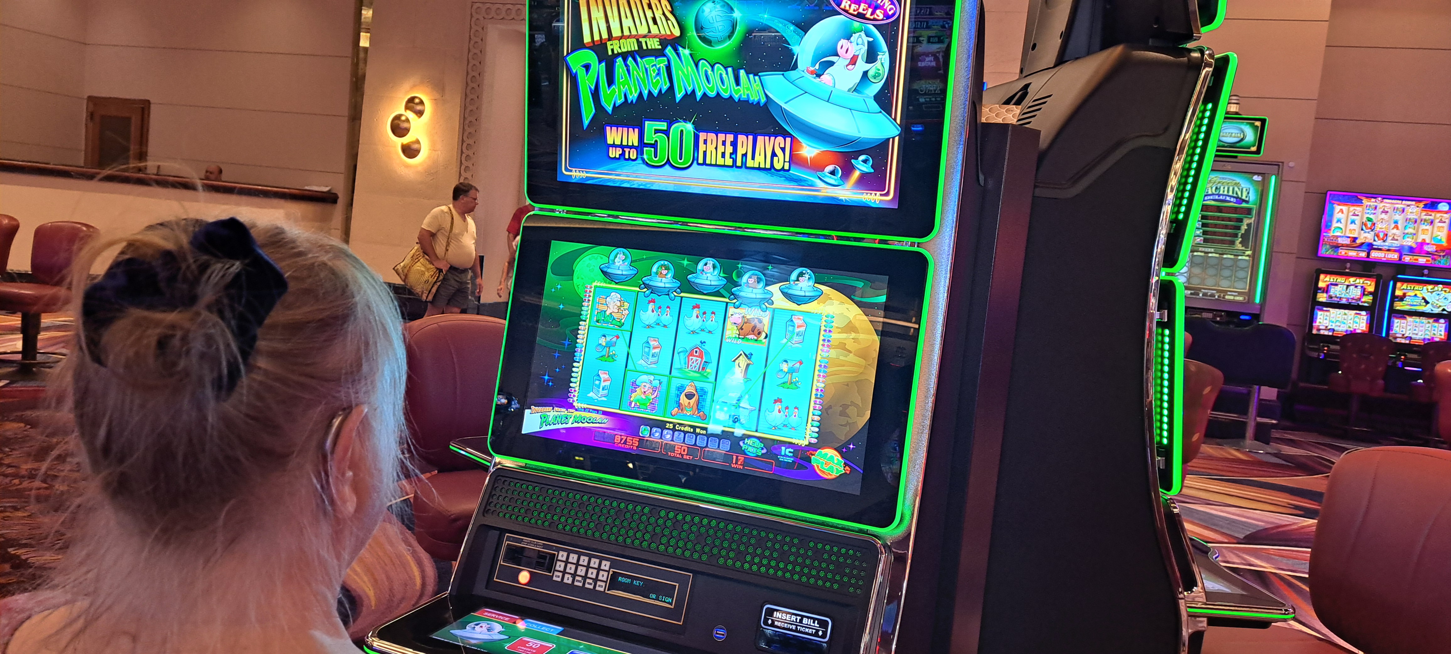 Katie had to hit her favorite slot machine at the Atlantis Resort Casino, Bahamas 2/5/24