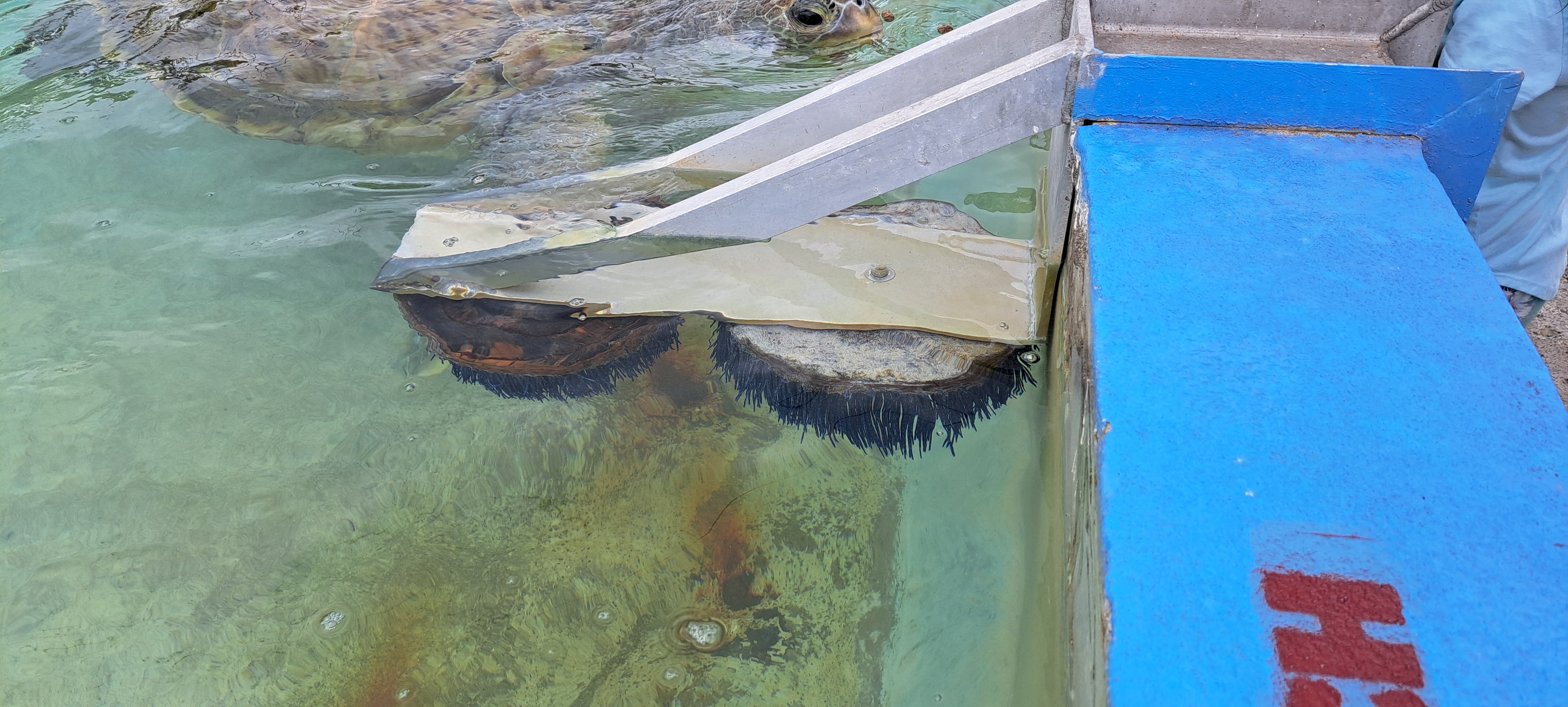 OK here's something we had not noticed before, this is a turtle "back scratcher" or shell scratcher, must really feel good