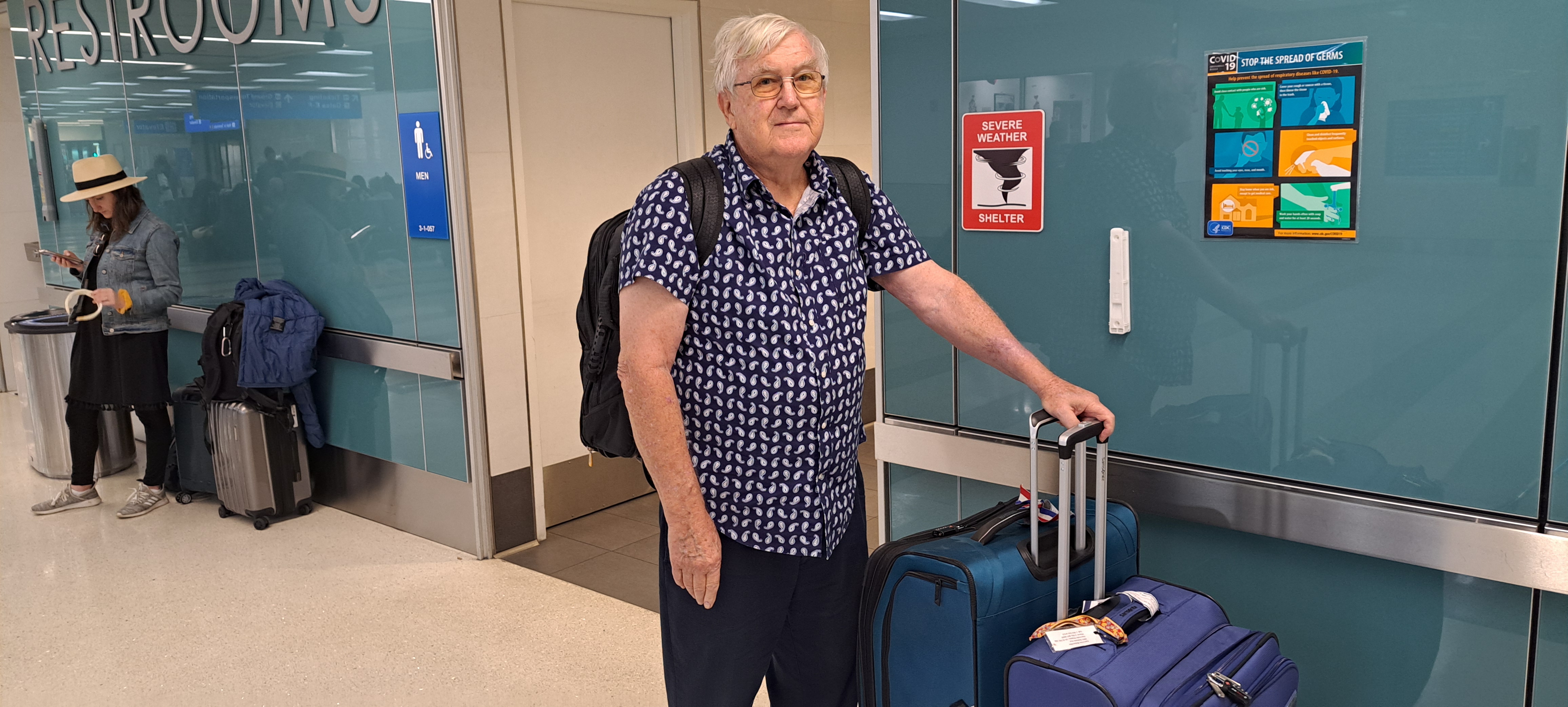 Wonder what we look like before flying home? If I look pooped then its accurate Note the backpack and two suitcases that I haul around. 2/11/24