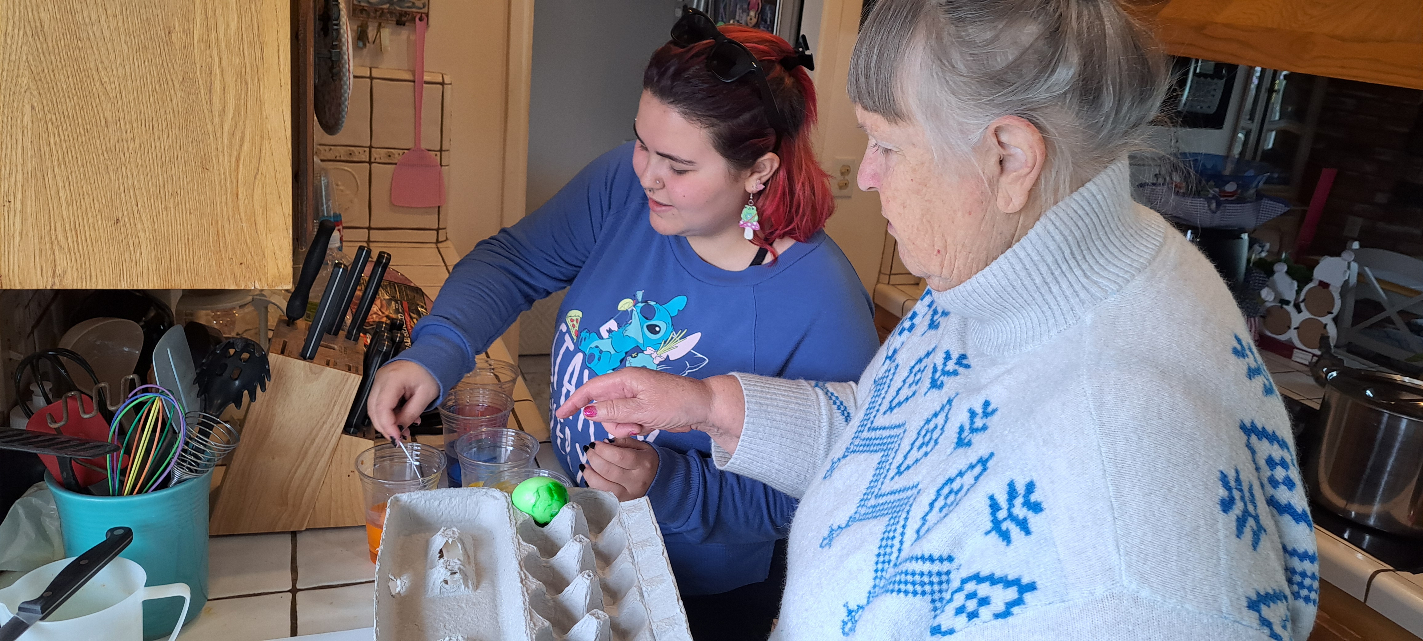 Kaitlyn and Katie coloring Easter eggs 3/31/24