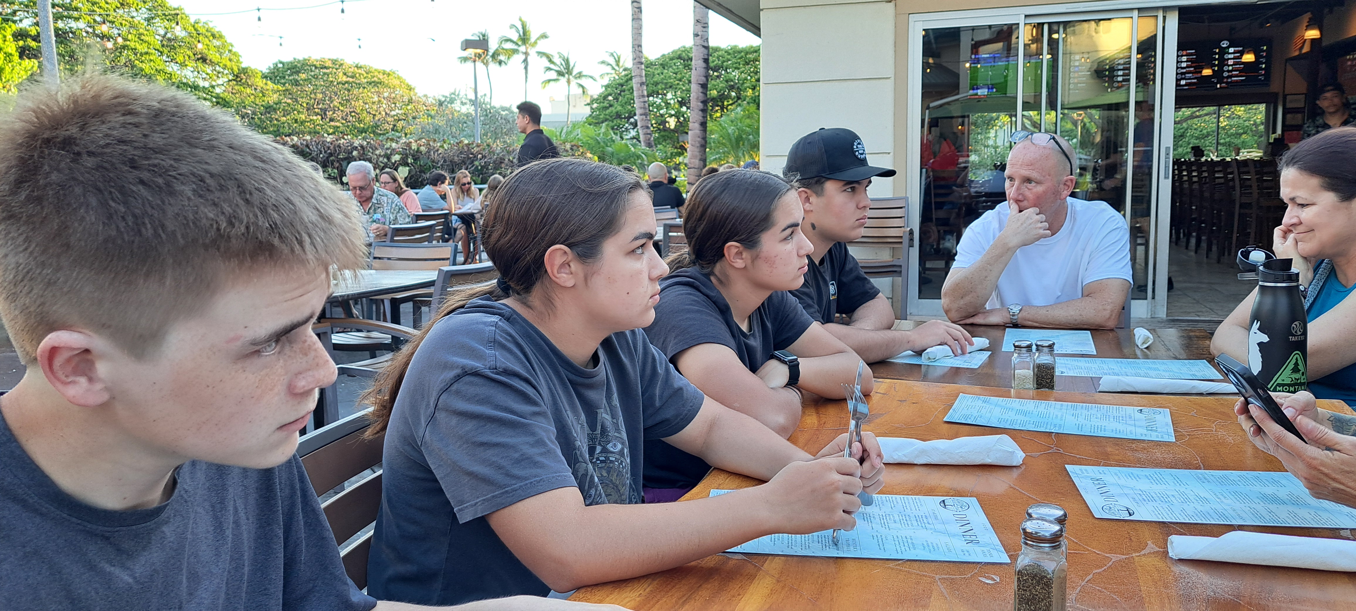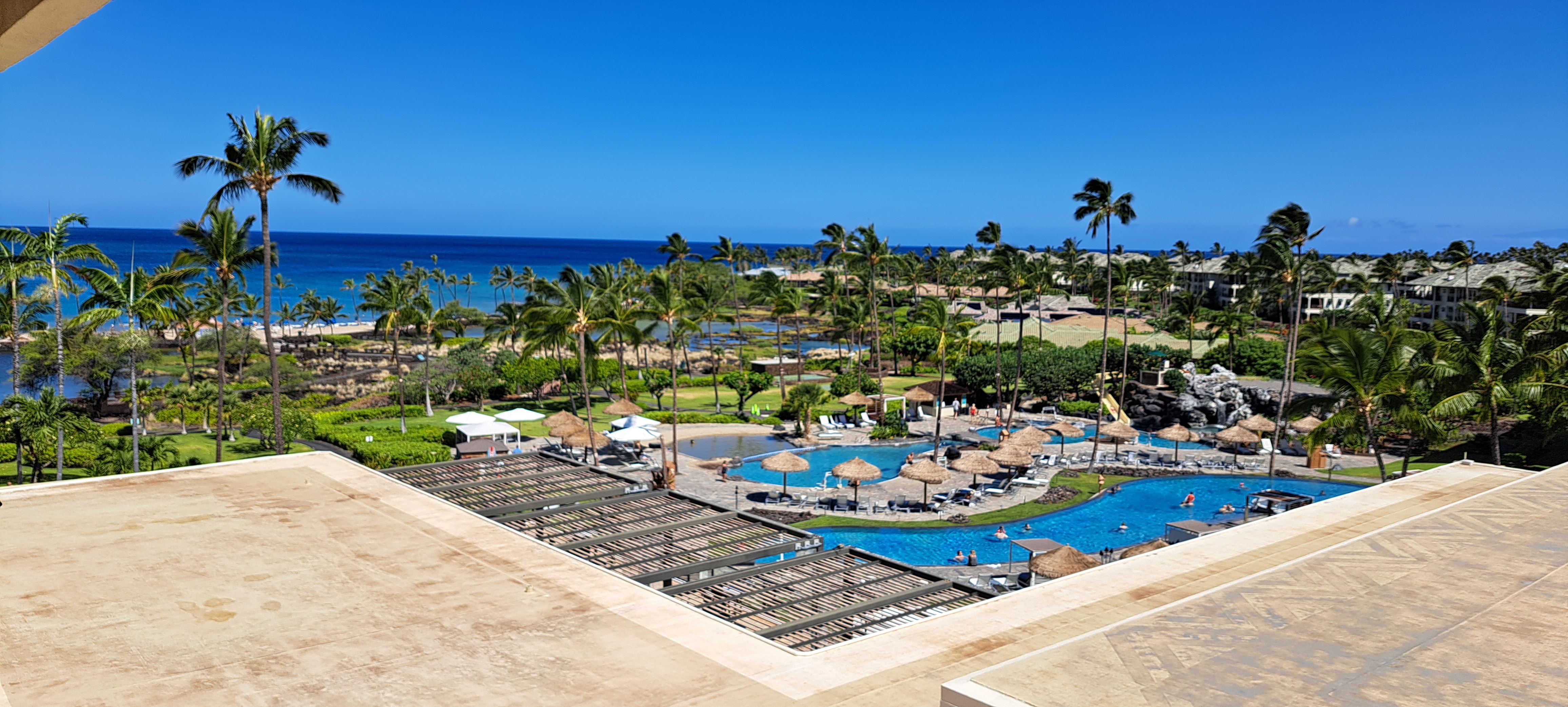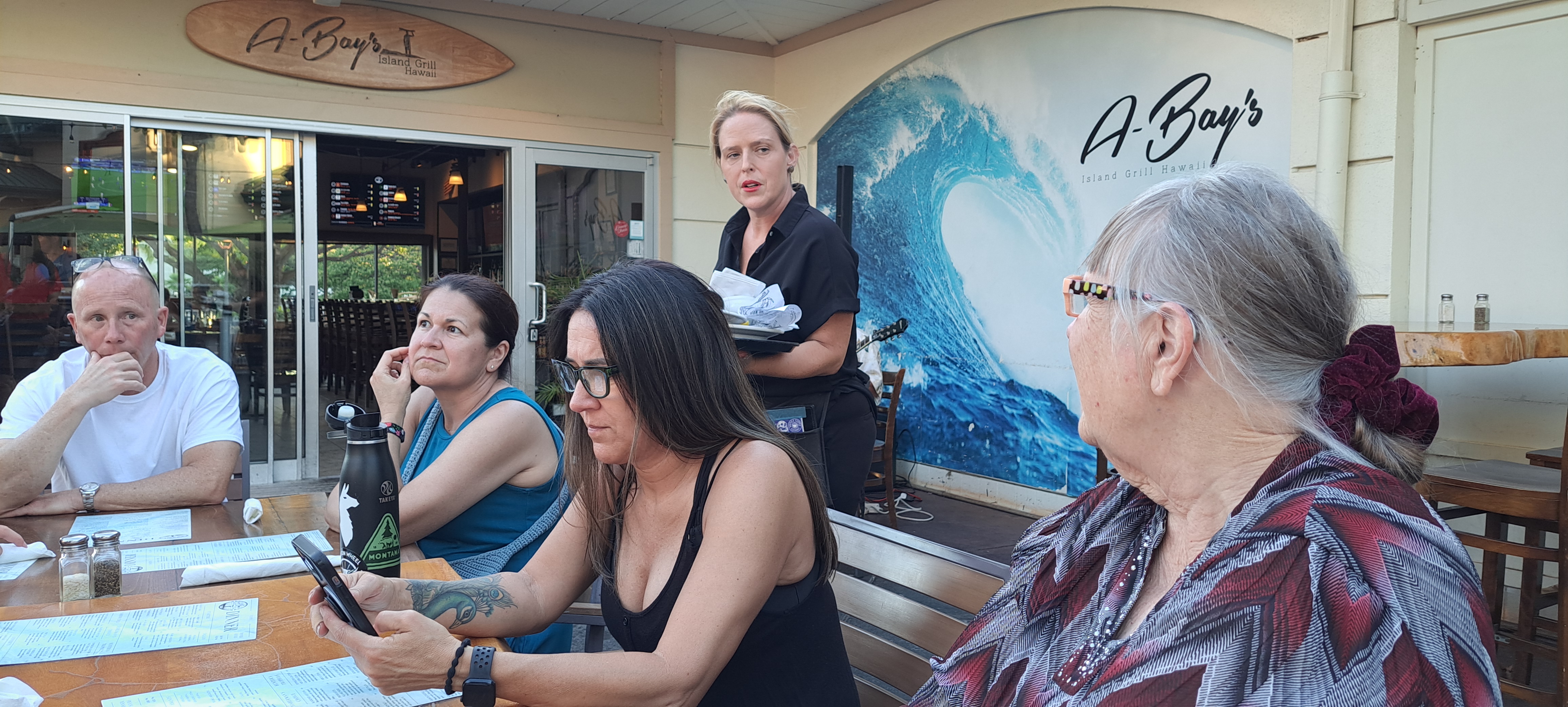 Dinner 6-24-24 first night on Hawaii Marriott Waikoloa Village Resort. Kings Shops, A-Bays restaurant noisy, slow service, expensive food