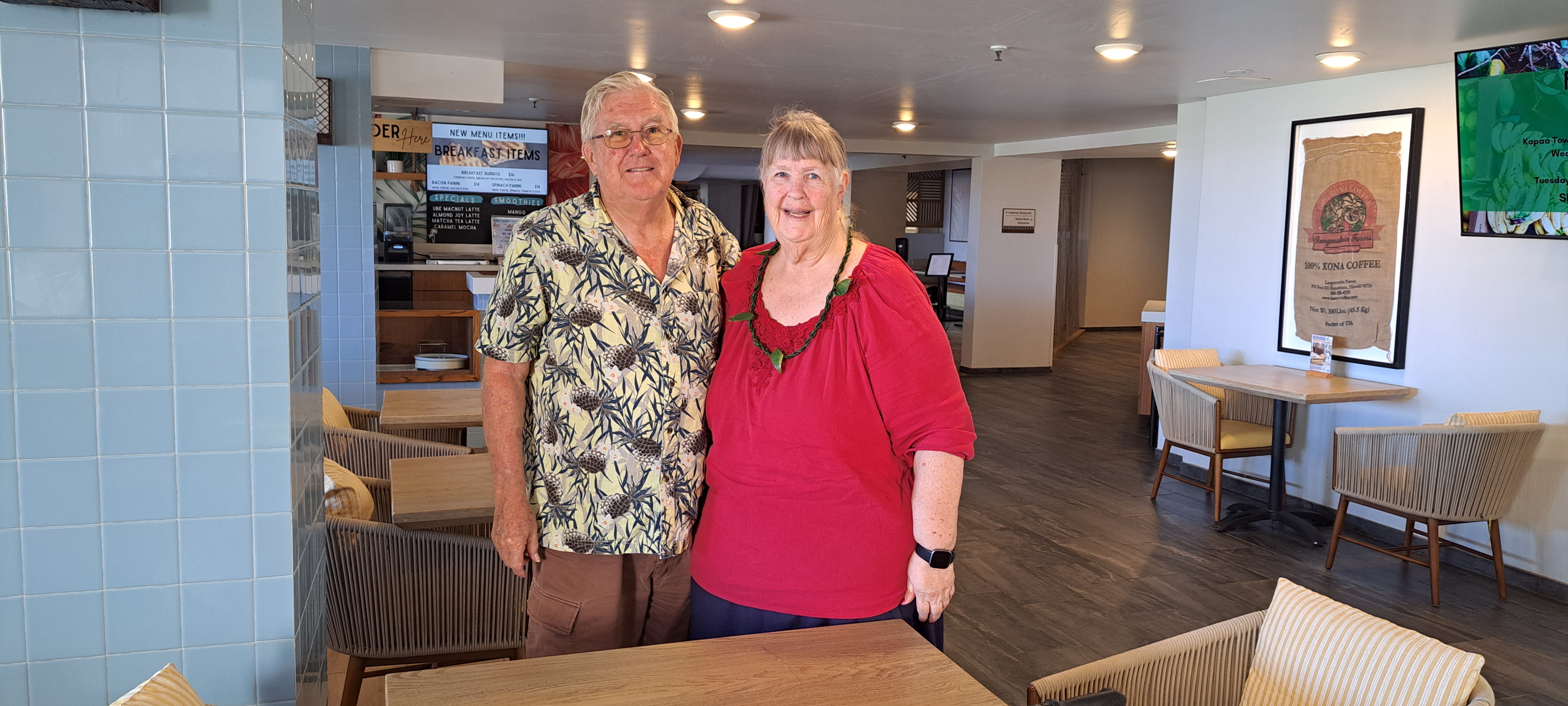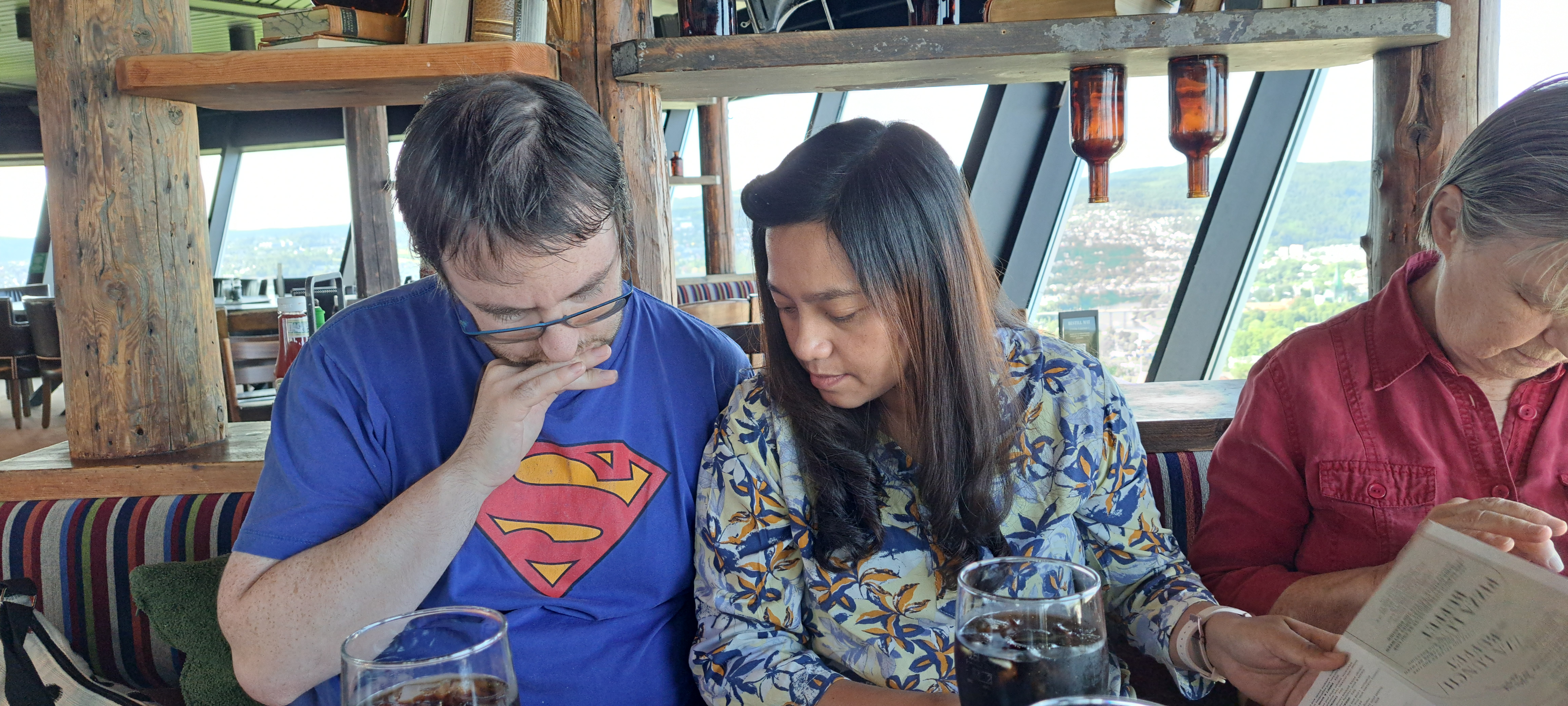 Jon and Ingebjord's son, Daniel and his wife Su checking out the menu. 8/27/24
