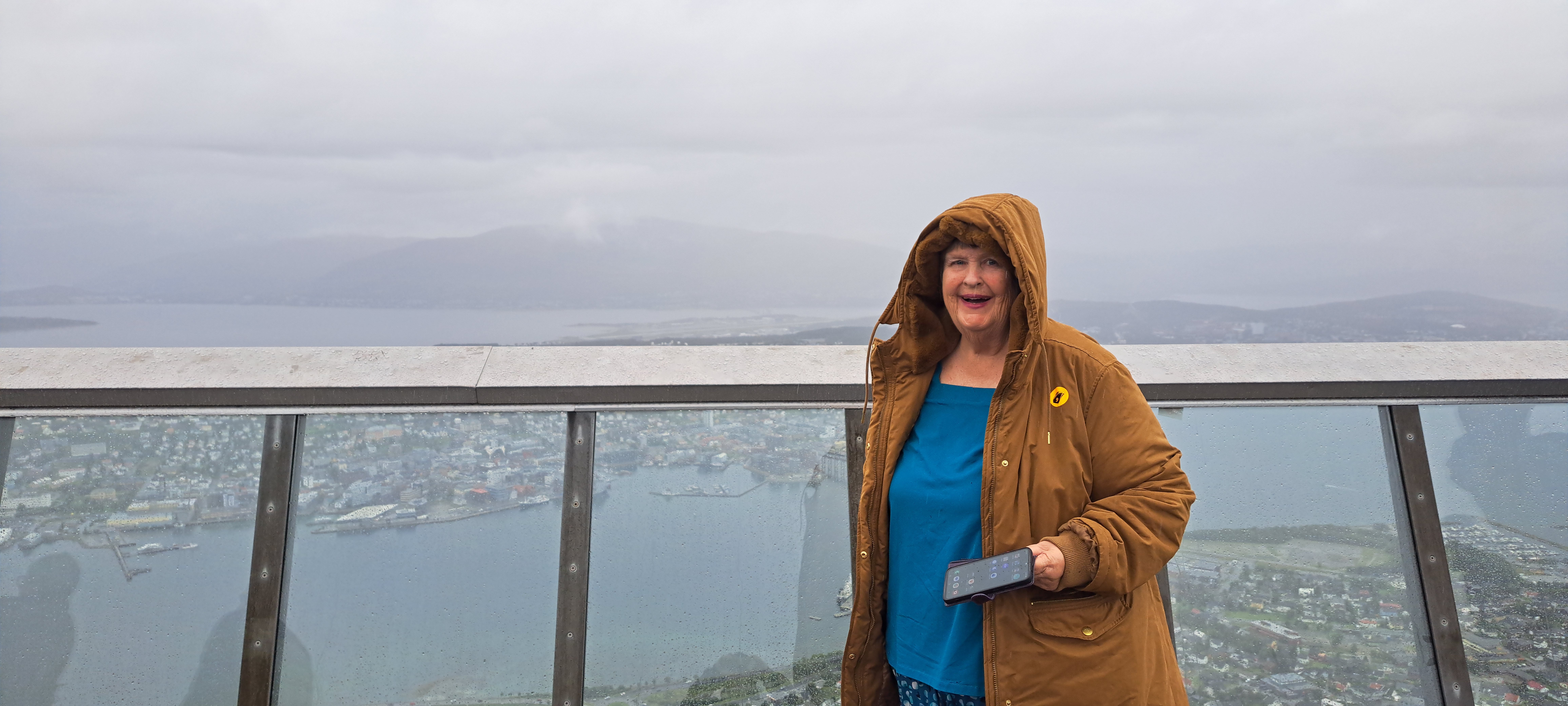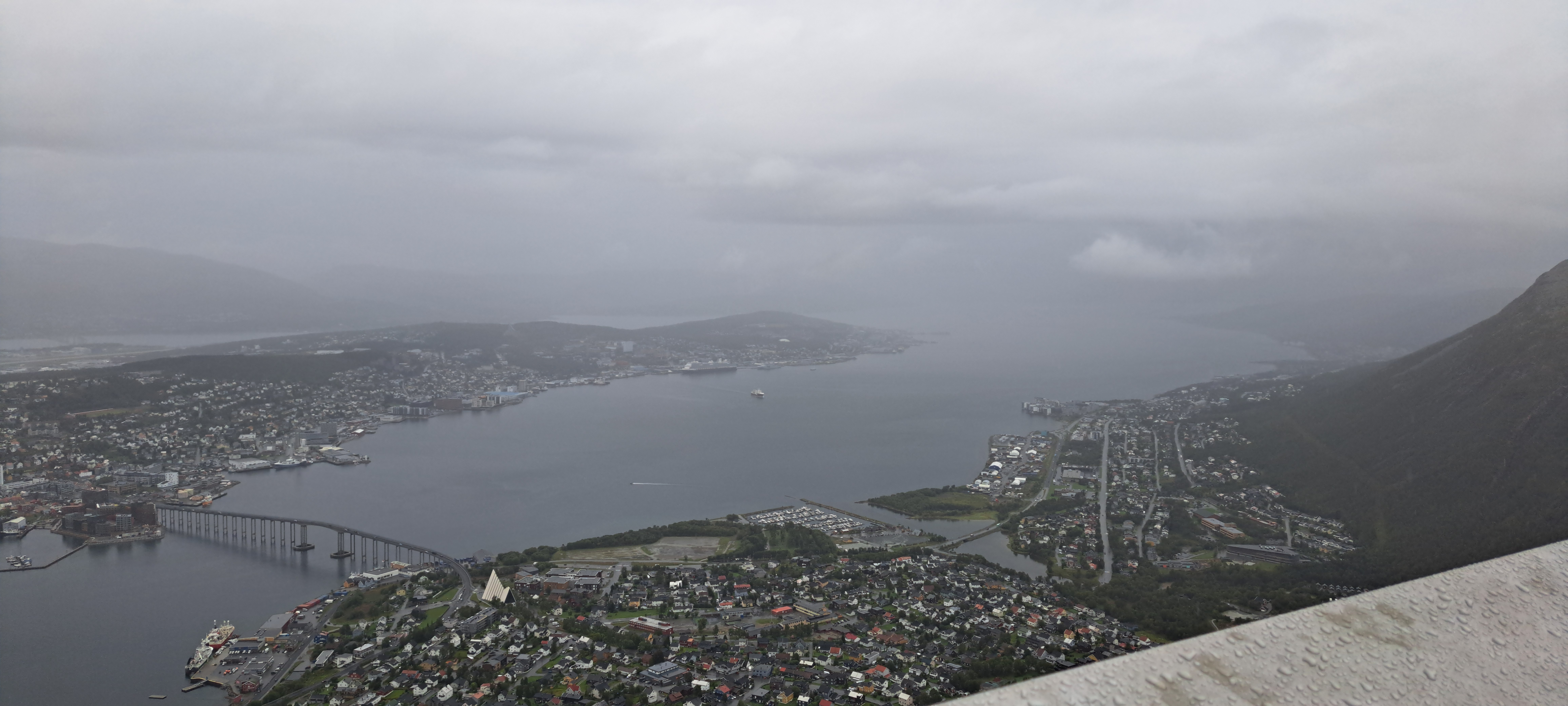Tromso, Norway on a bus tour, very cold, rainy, windy took a funicular up to this lookout point 8/30/24