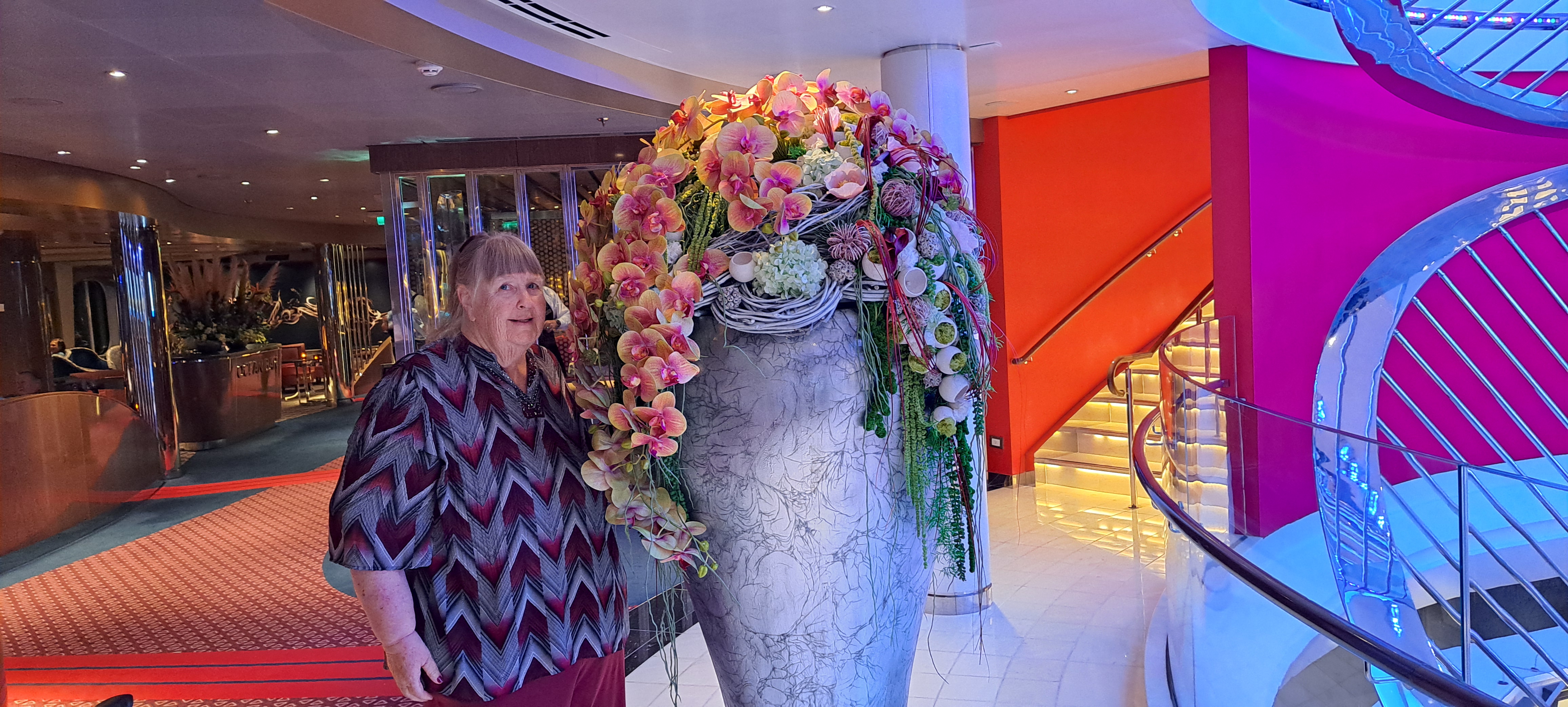 Katie with her favorite flower arrangement on the ship 9/10/24