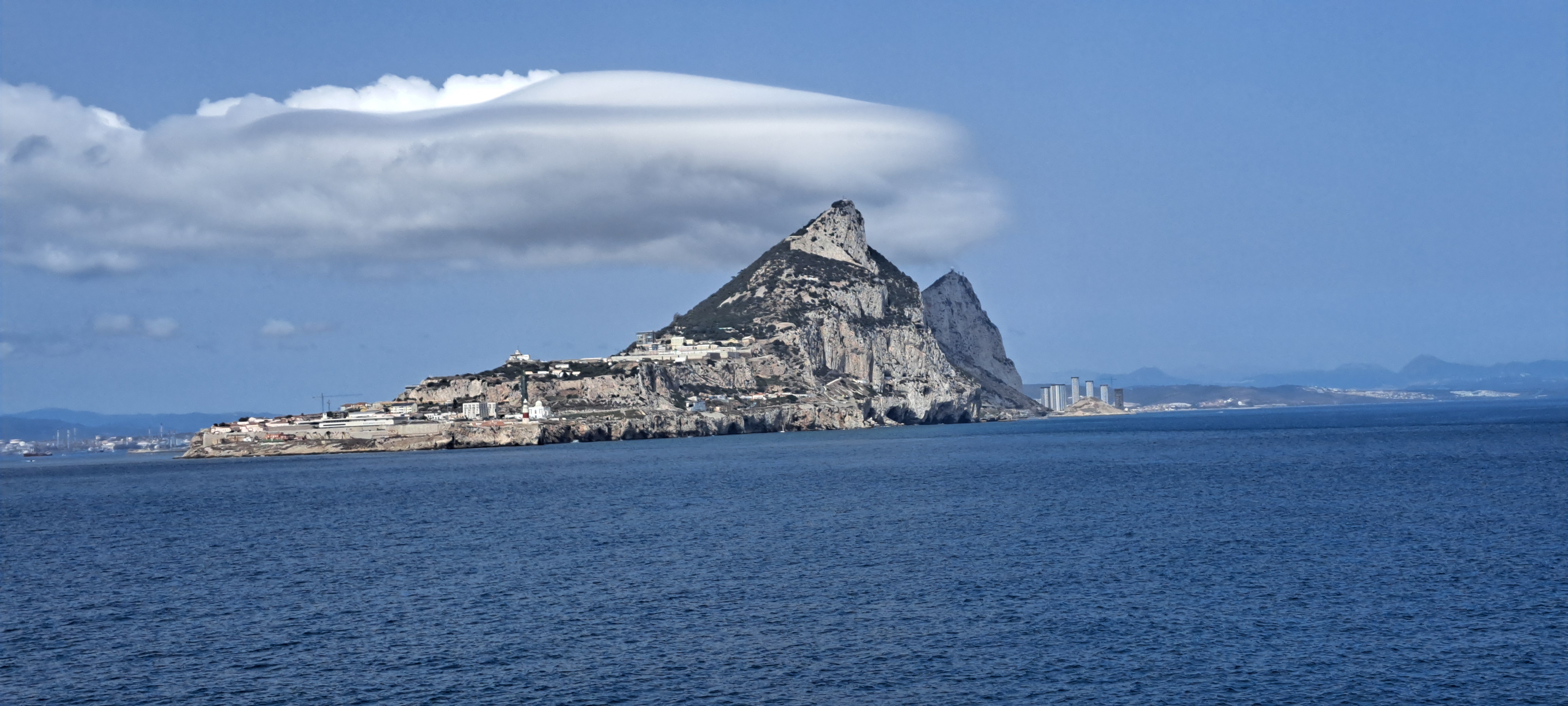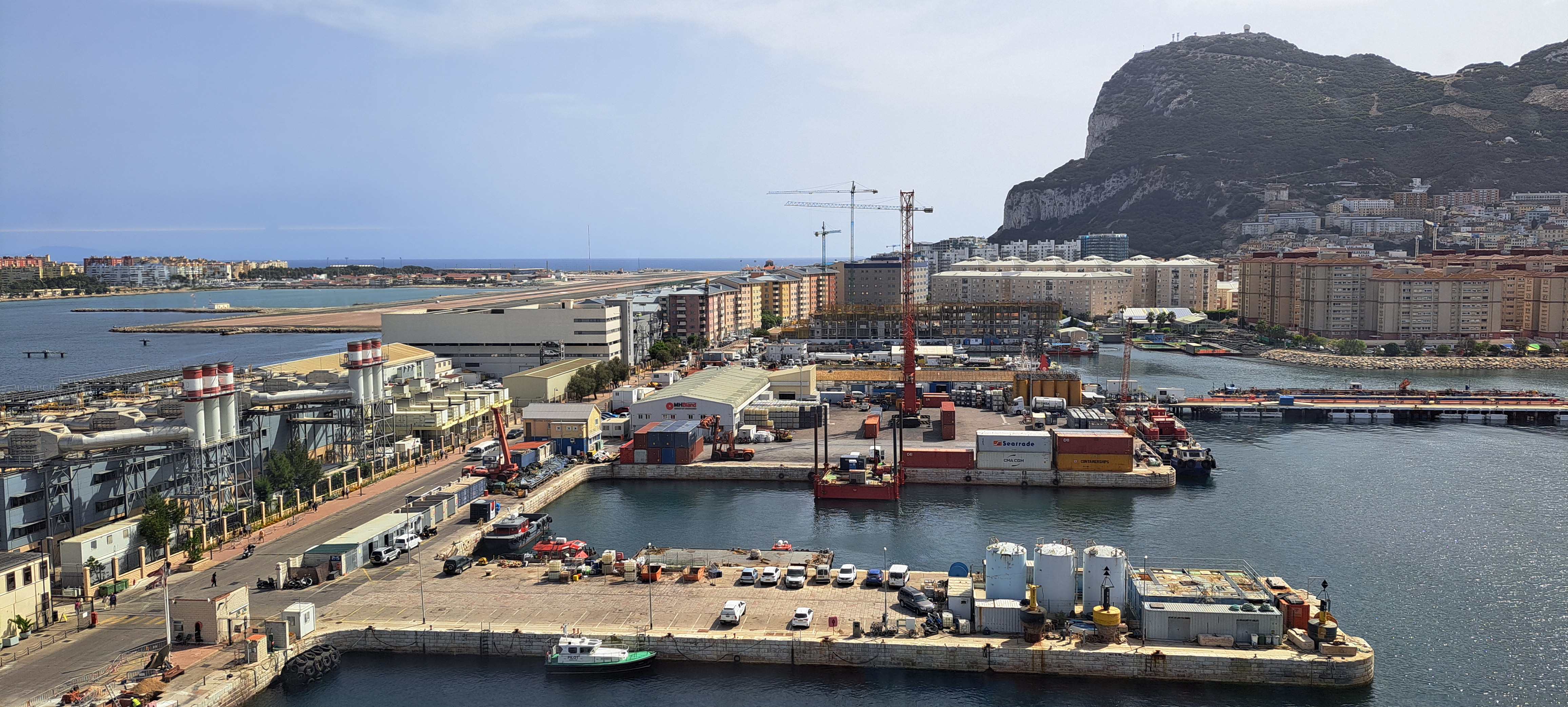 View from ship at Gilbralter, UK note runway at far left, crosses highway and traffic halts when in use 9/15/24