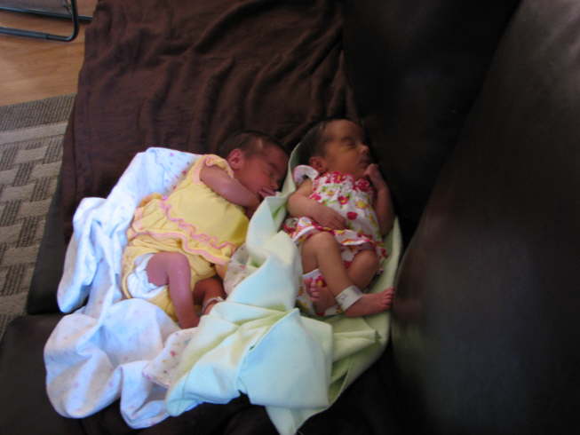 Asleep on their parent's couch.