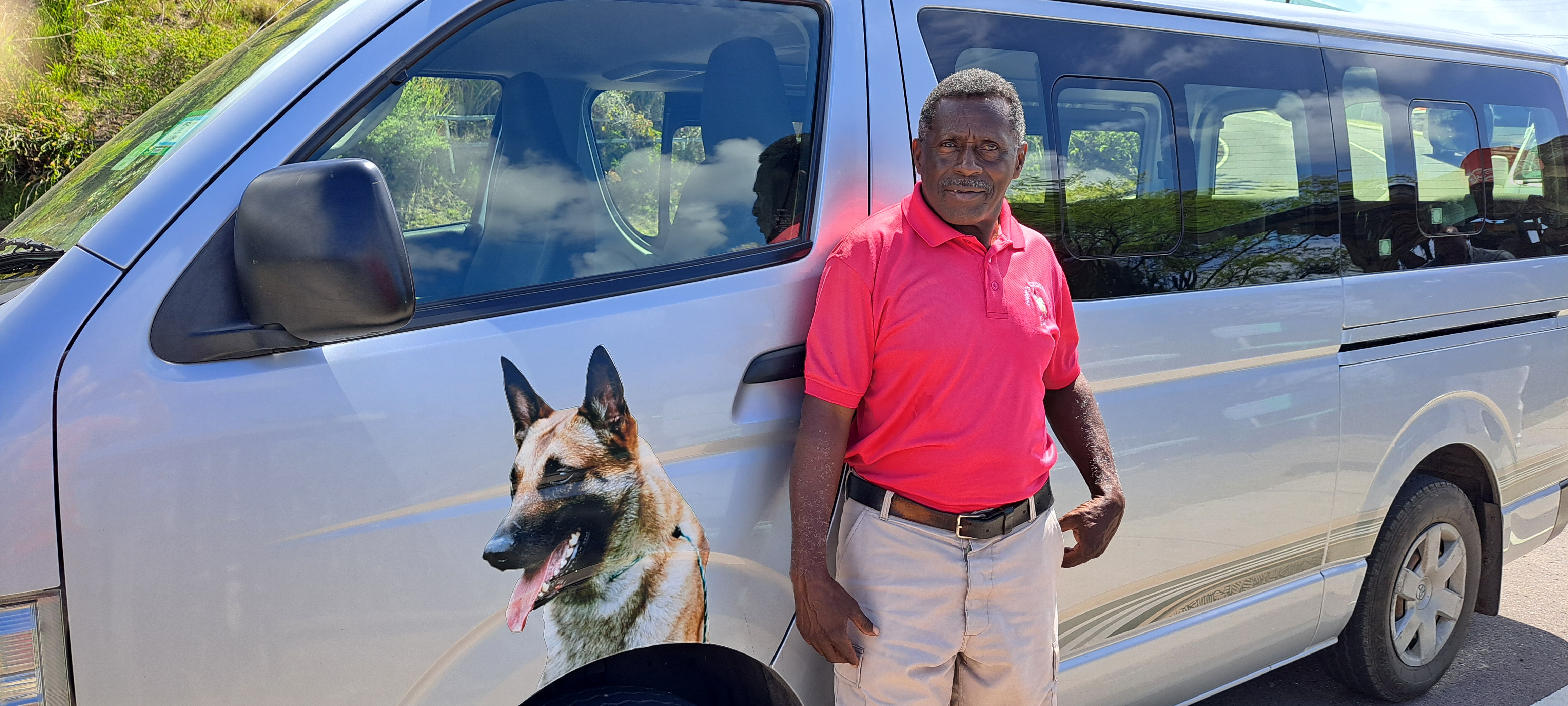Joe our great St. Kitts driver and one of his dogs 3-25-25