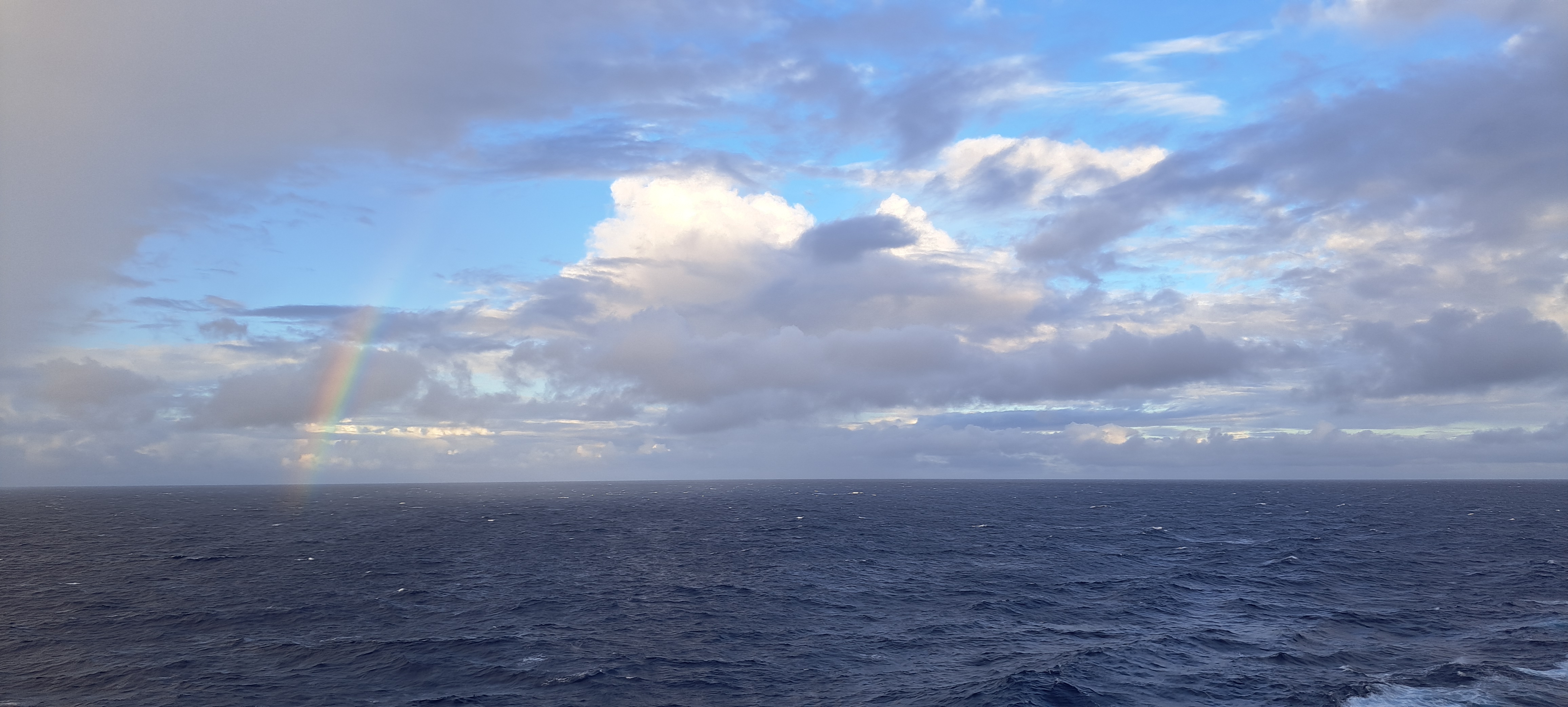 Day at sea, clouds with a bonus rainbow on the left side 3-28-25