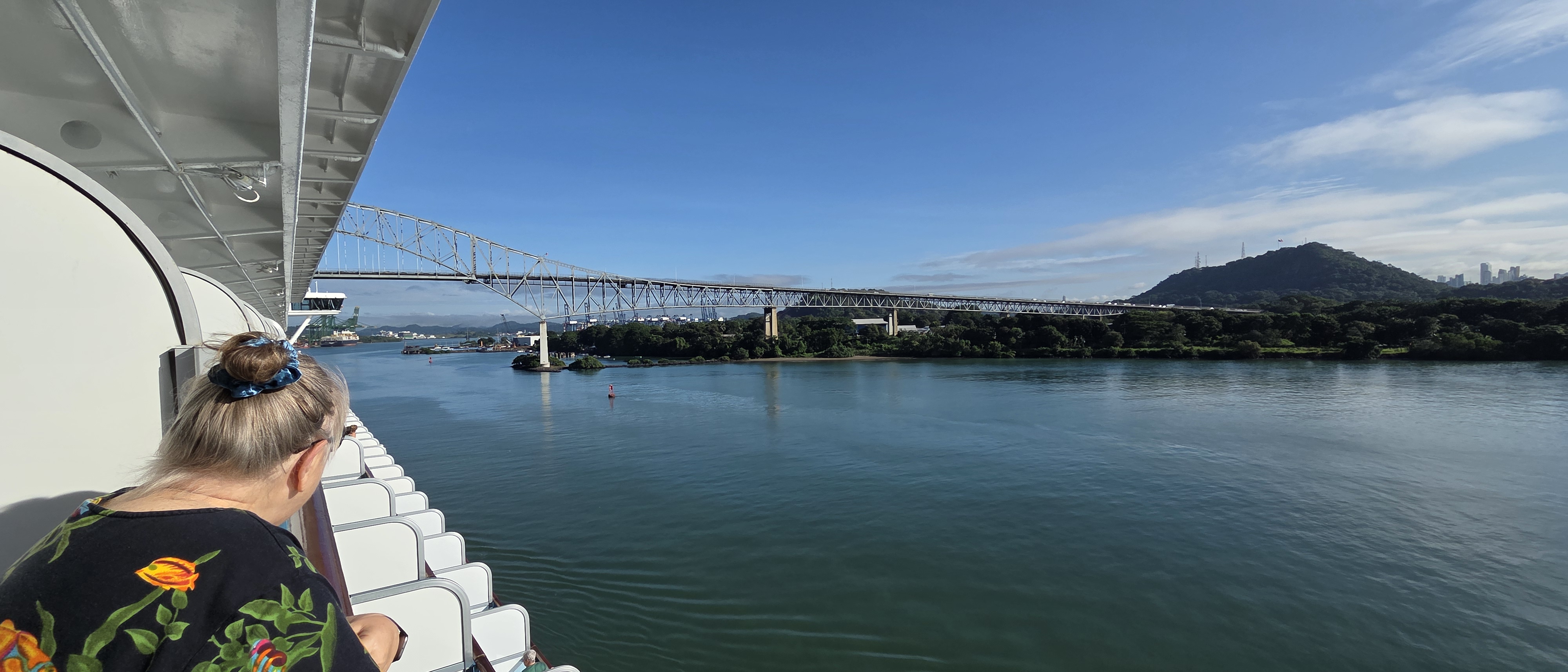 Starting our Panama Canal transt by cruising under the "Bridge of the Americas" Highway 1 into Panama City 9-26-25