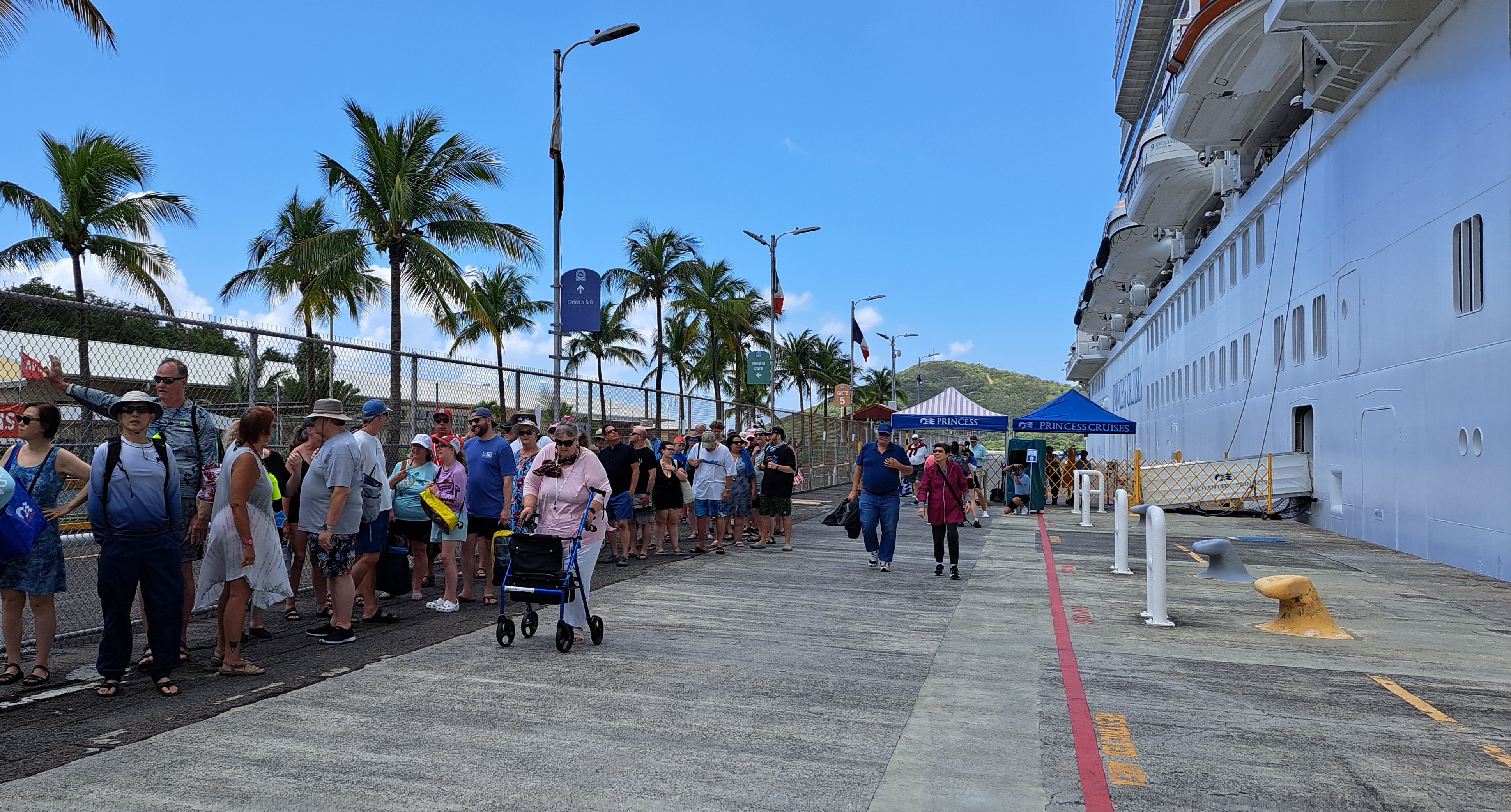 Our quick trip off the ship at St. Thomas. We aren't skipping the line, they are lined up for a tour 3-23-25