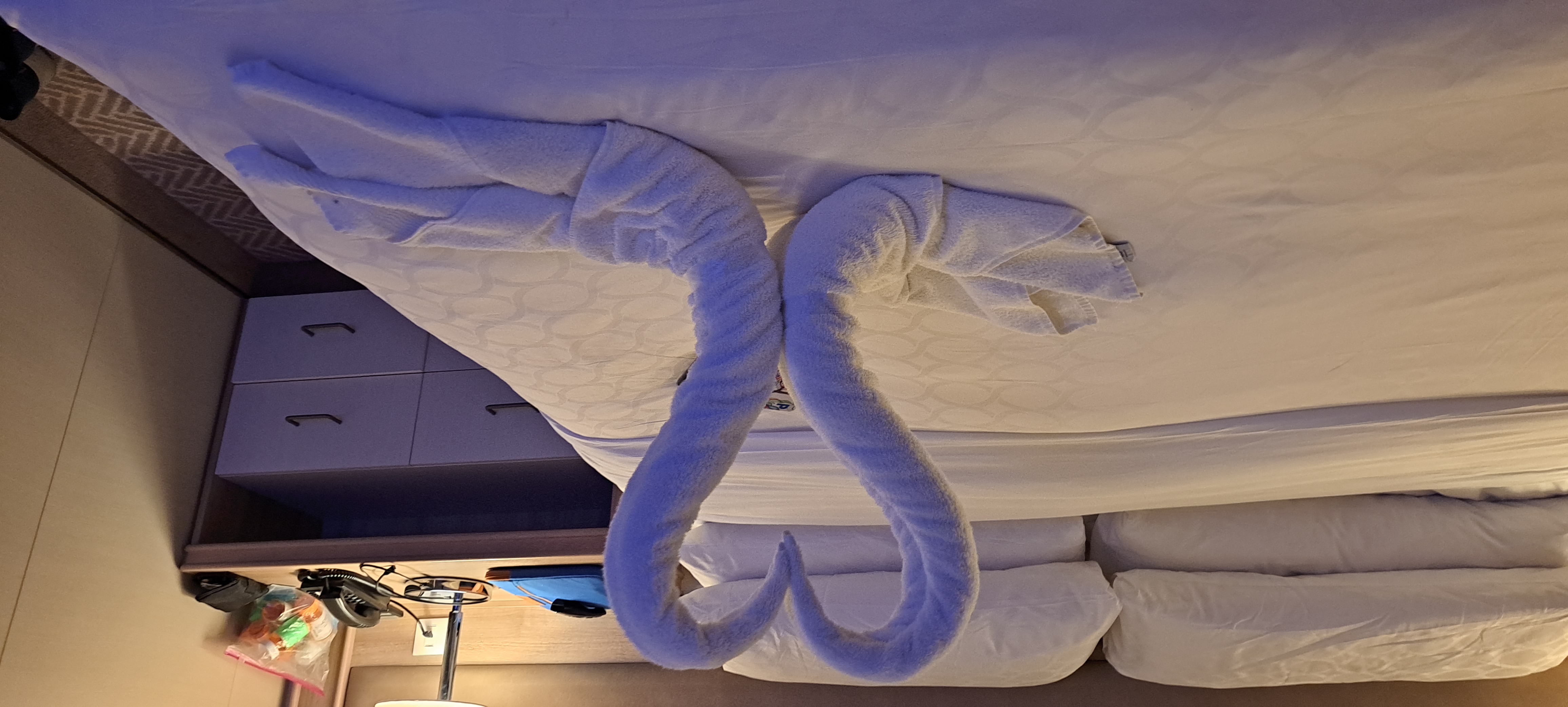Towel animal that greeted us on our Anniversary, thanks to our cabin steward 3-25-25