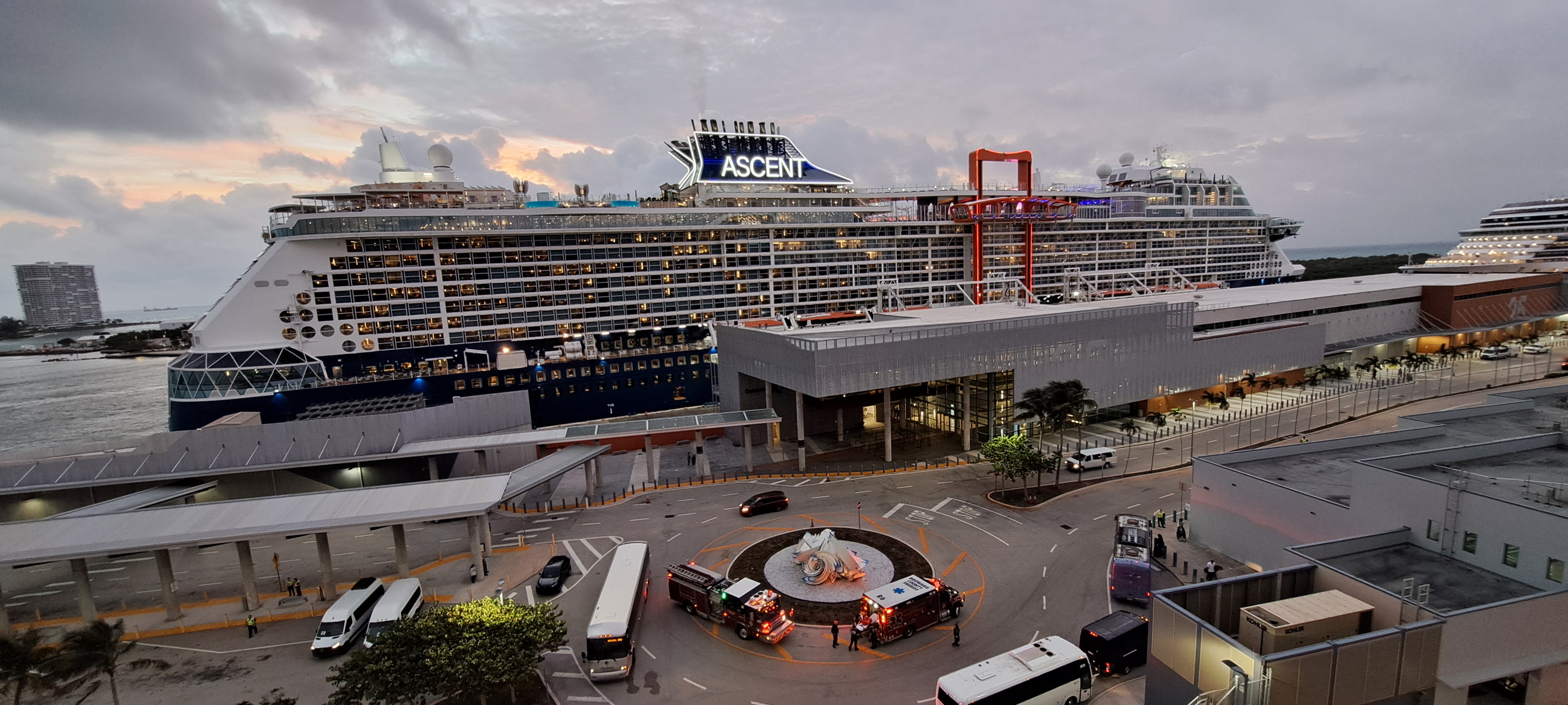 This greeted us after opening the curtain on our cabin, the Celebrity Ascent, our ship for the next week's cruise, first time we havein't had to take