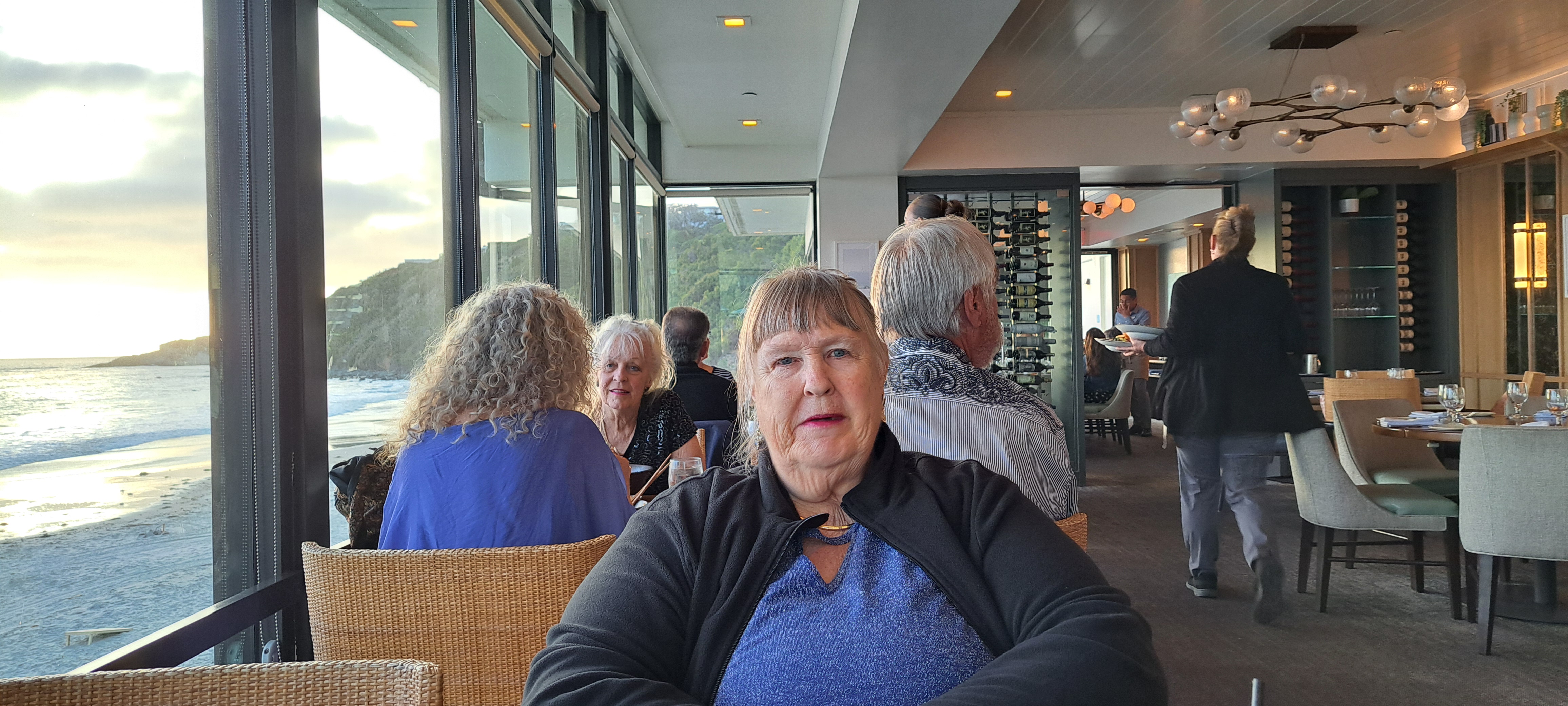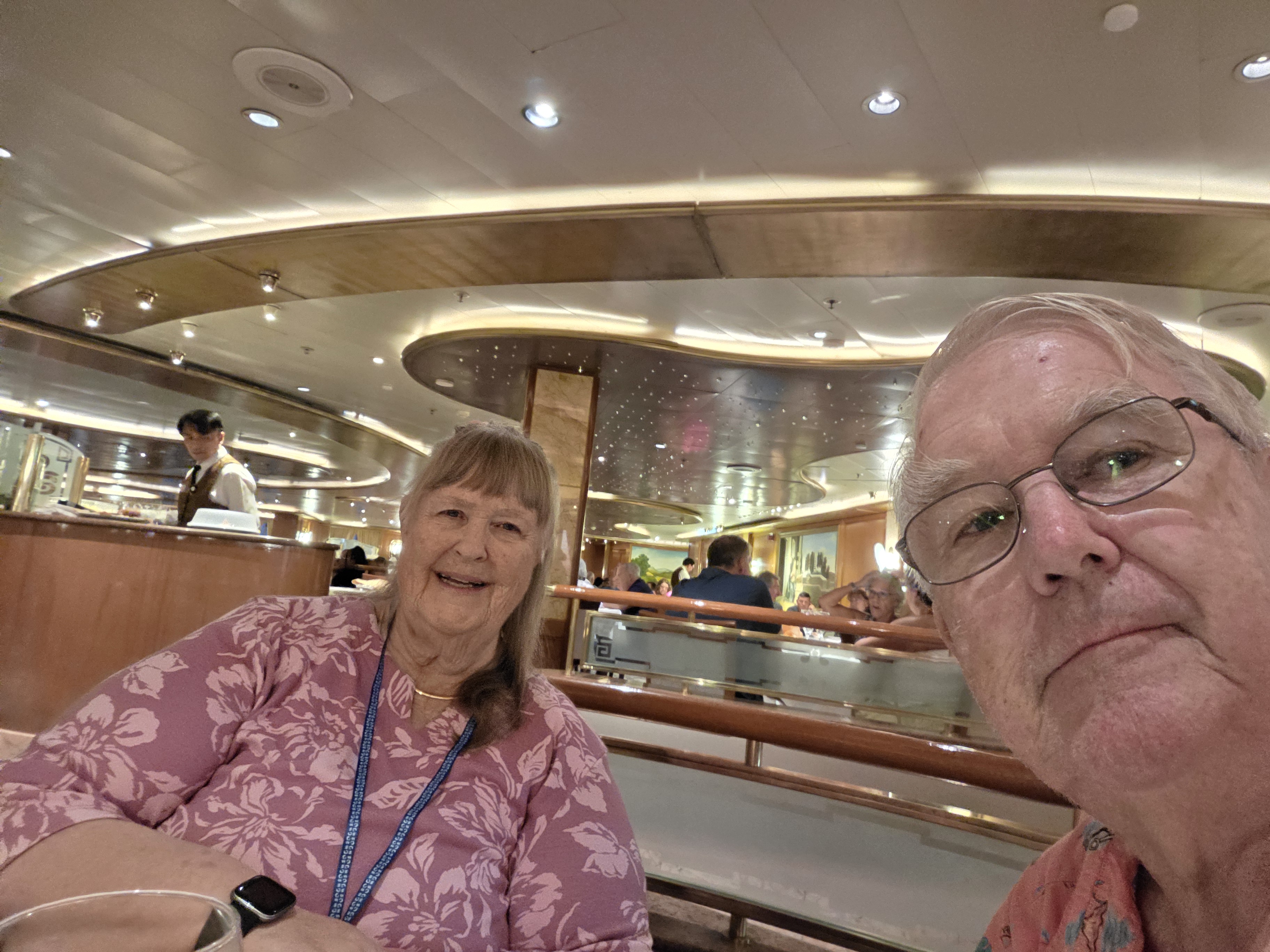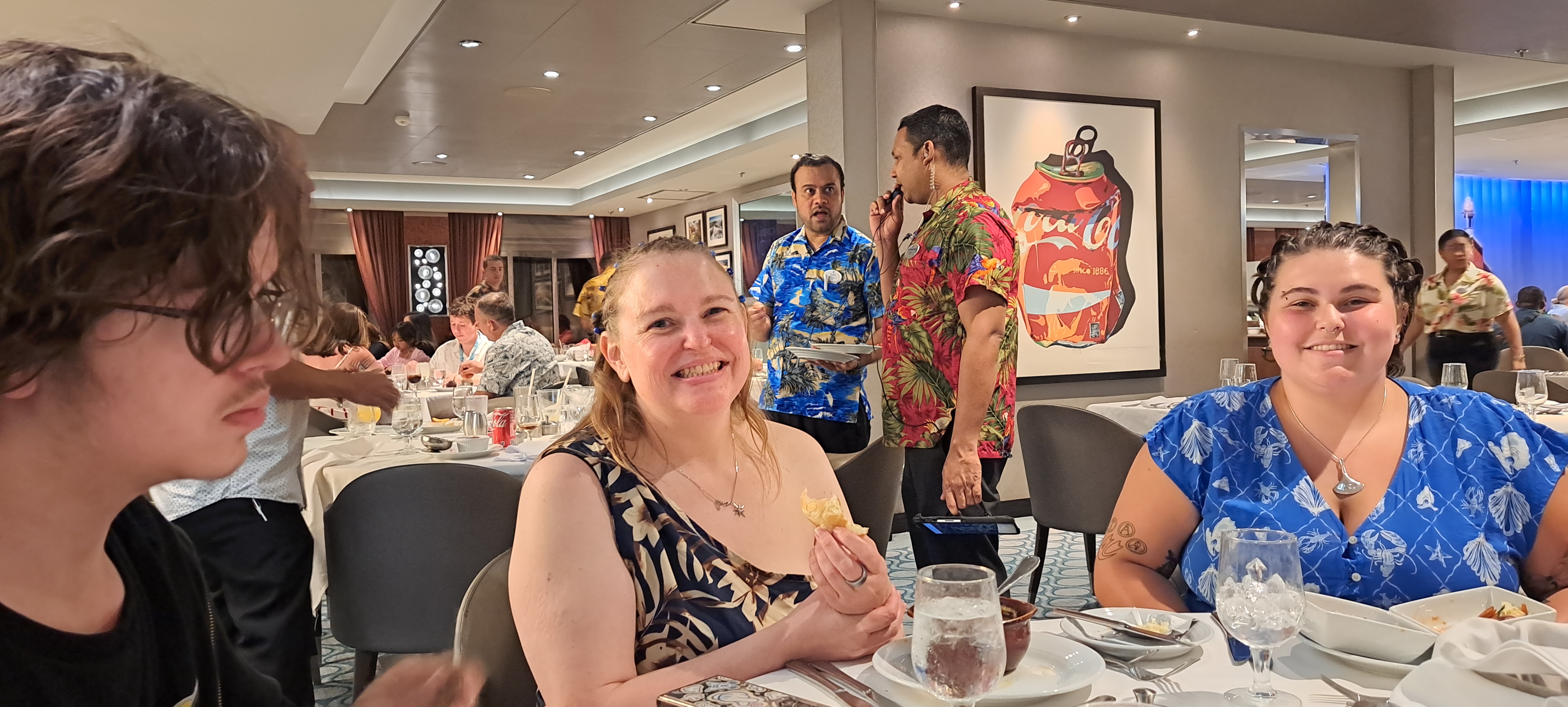 One of our dinners in the main dining room, Alexander, Karen and Kaitlyn. Not shown me, Katie and Kevin 7-12-25
