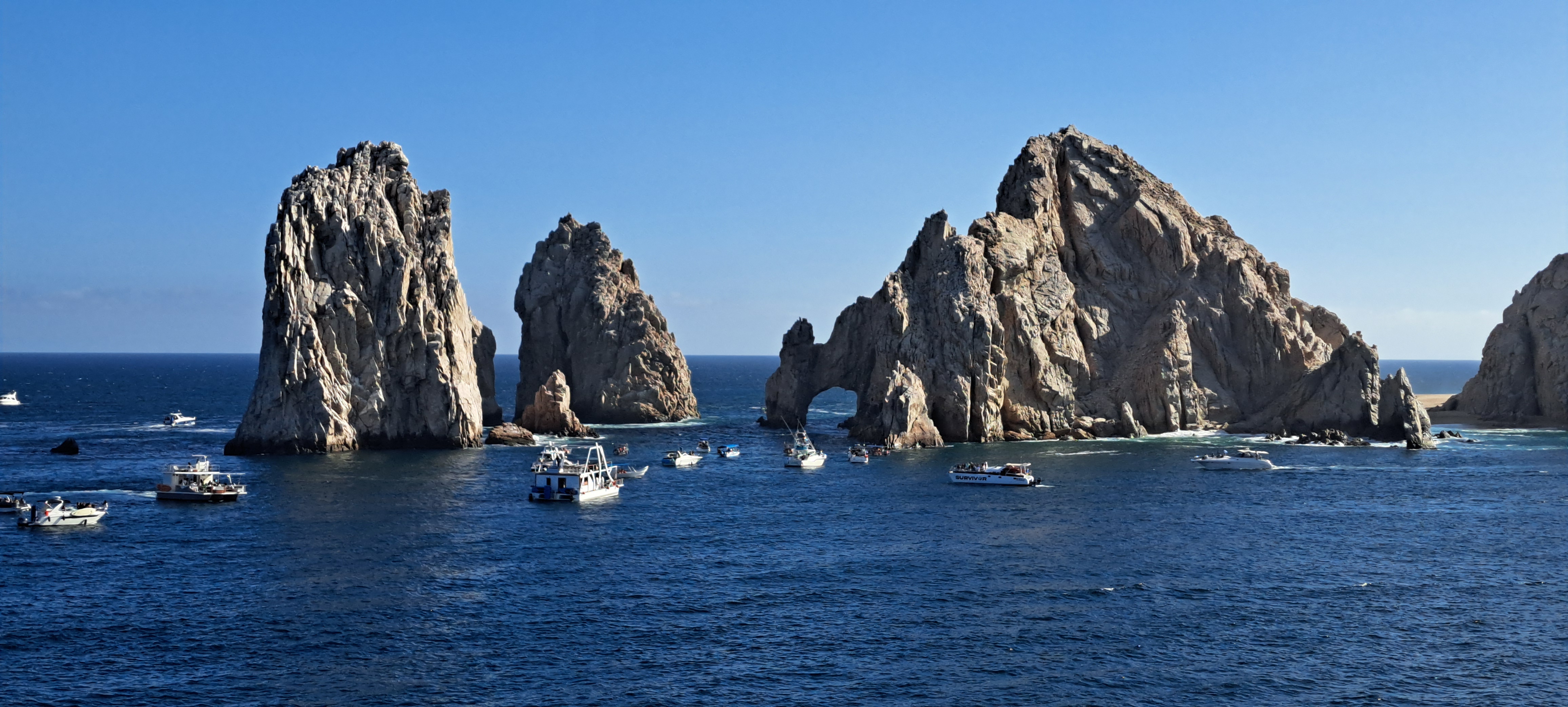 Ovation of the Seas, anchored off of Cabo San Lucal, look at all the tour boats showing people the rocky shore across from the tourist areas 7-12-25