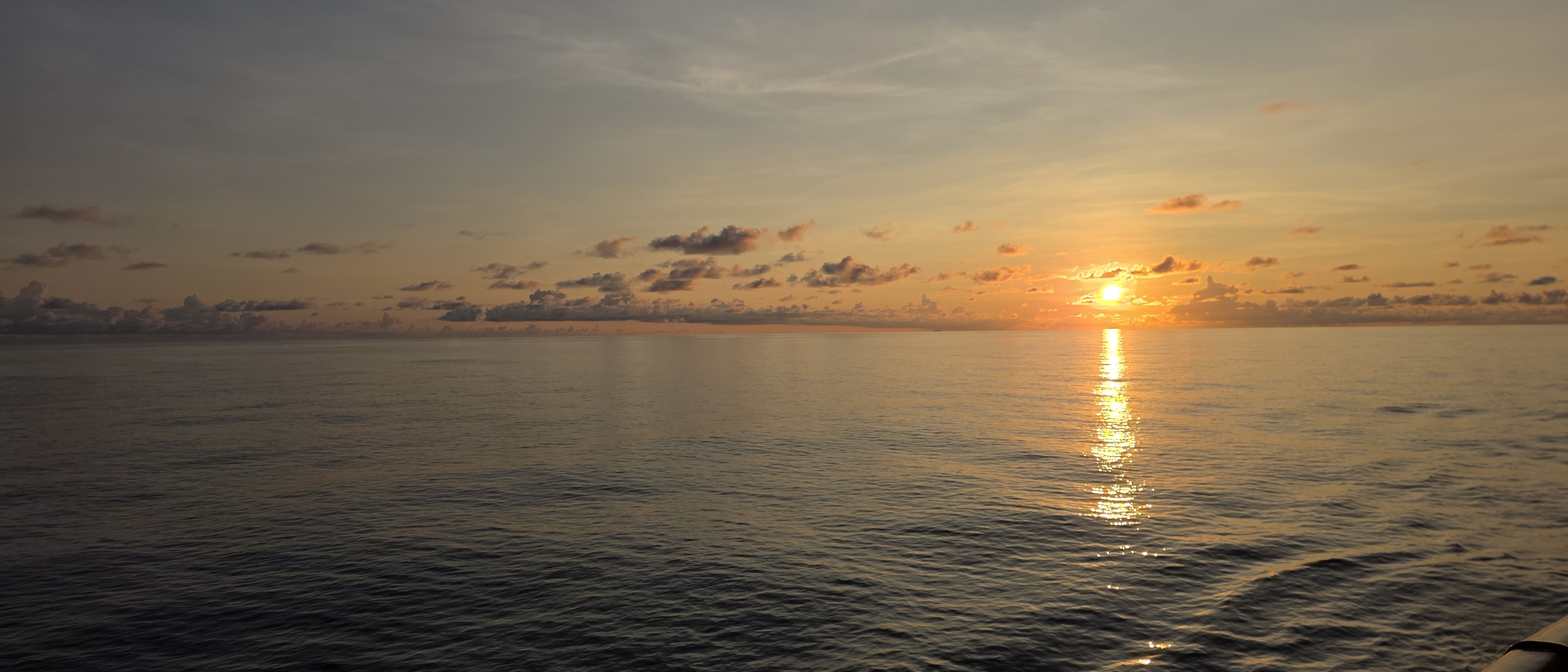 Day at sea, clouds with a bonus rainbow on the left side 3-28-25